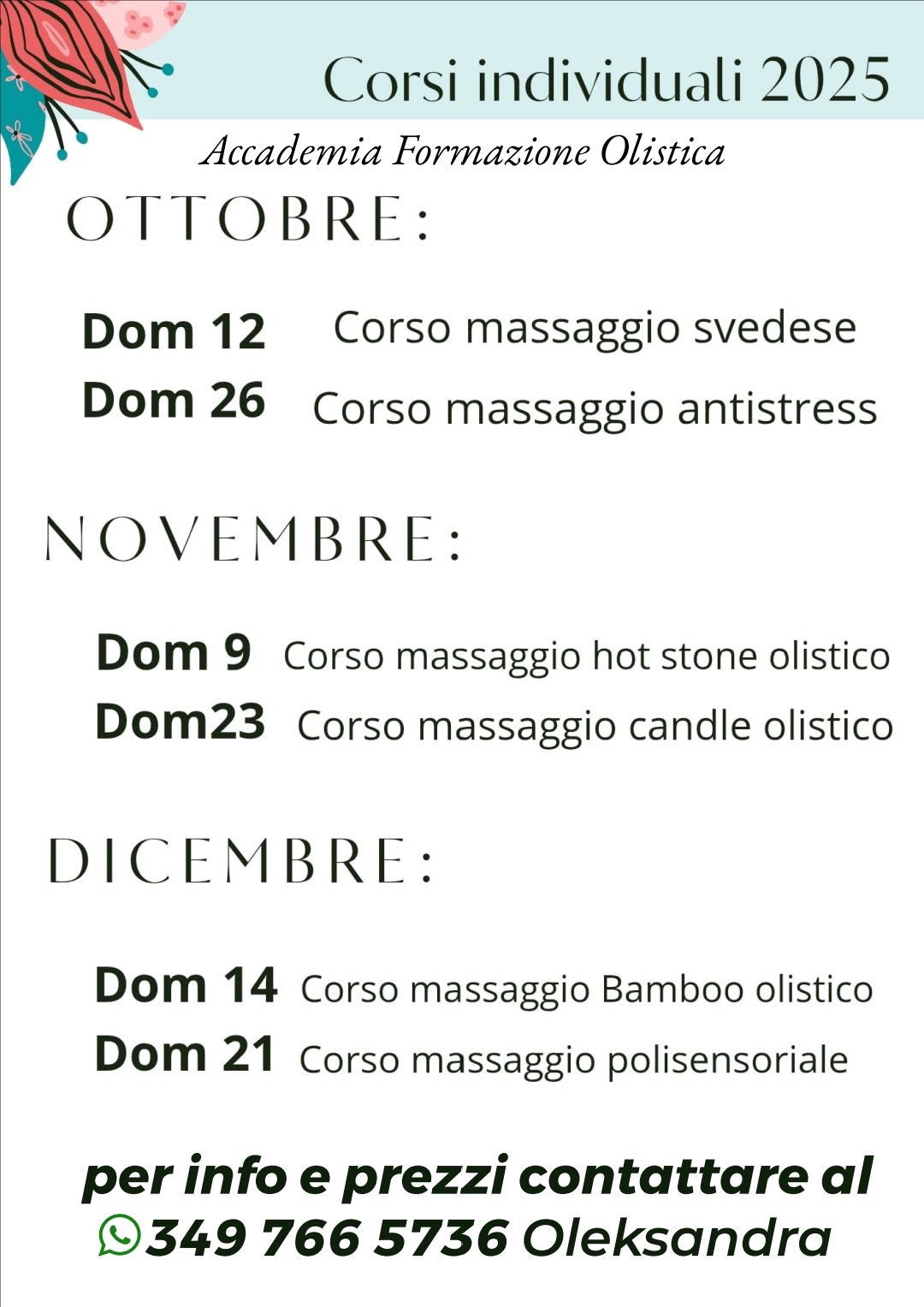 Oleksandra è una vera professionista, gentilissima, ti mette a tuo agio e già nella prima sessione puoi sentire un risultato positivo nel corpo e mente, fantastica e consigliatissima. Grazie ❤️